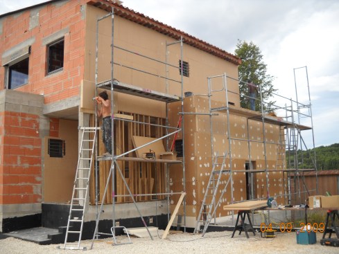 Maison Basse Consommation — M B C –, l’ossature est en mono mur de 25 cm, l’isolation se compose de la manière suivante: