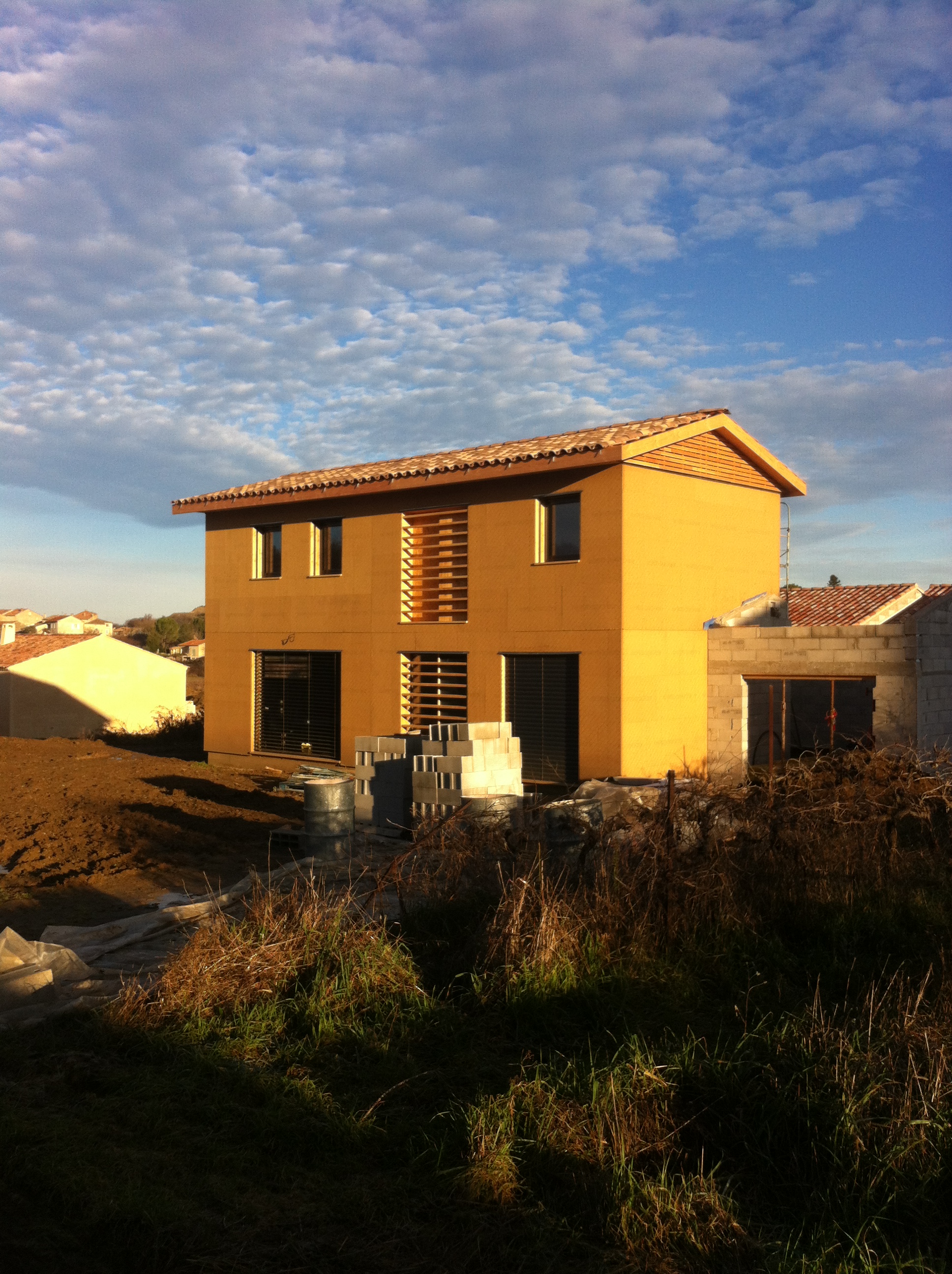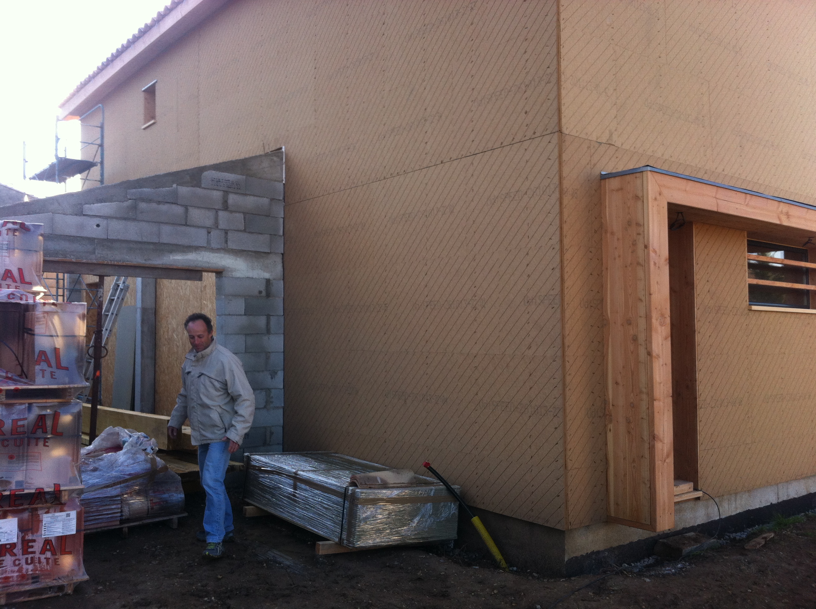 Une construction en ossature bois avec un des panneaux les plus performantes du marché – l’UdiSPEED® de chez Unger-DIFFUTHERM – double couche 2 X 20 mm de ce fait anti-deformante – rainurée pour compenser les contraintes statiques de la construction en ossature bois.