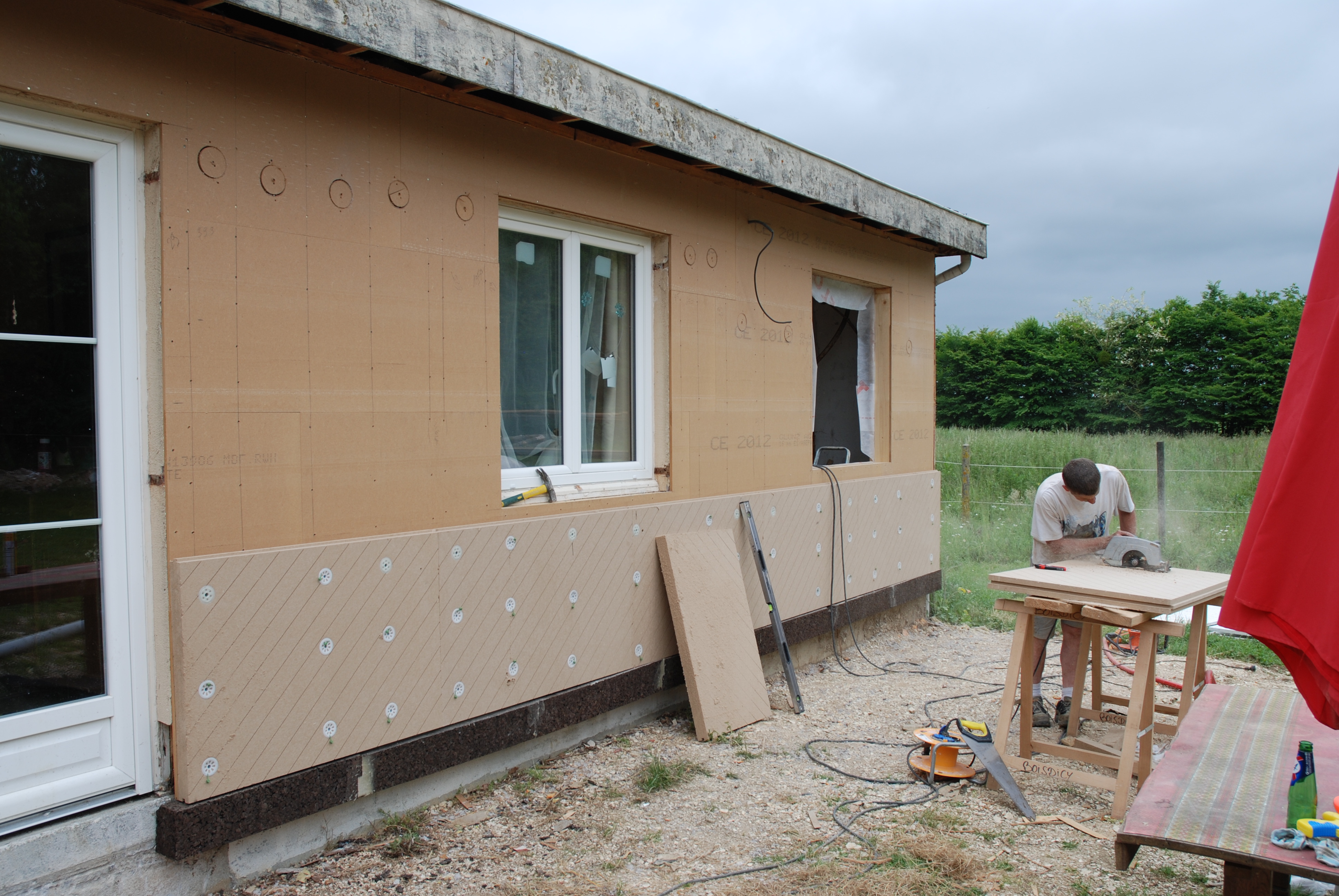 Pose d’un panneau de fibre de bois enduisable UdiSPEED® –densité 260 kg/m3 – épaisseur 60 mm –
