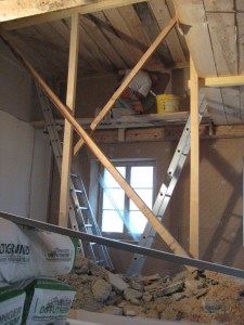 Vu l’état des murs à l’intérieur et l’irrégularité du support, le panneau UDIRECO était « la » solution ..