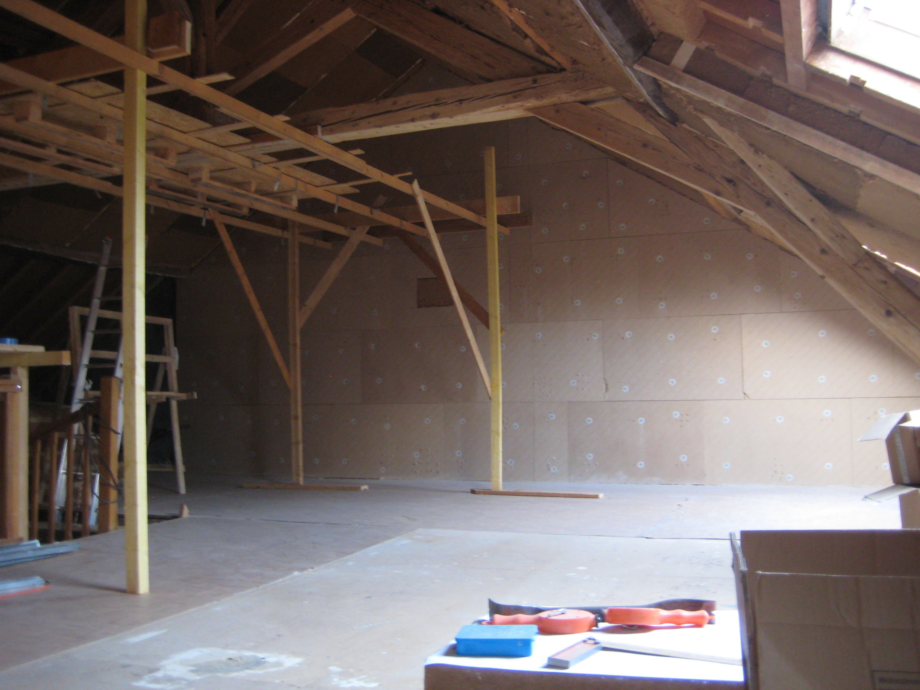 Il ne fallait pas perdre l’aspect de ce bâtiment d’une ancienne fromagerie unique dans son genre, la seule solution pour une isolation thermique a été une intervention par l’intérieur.