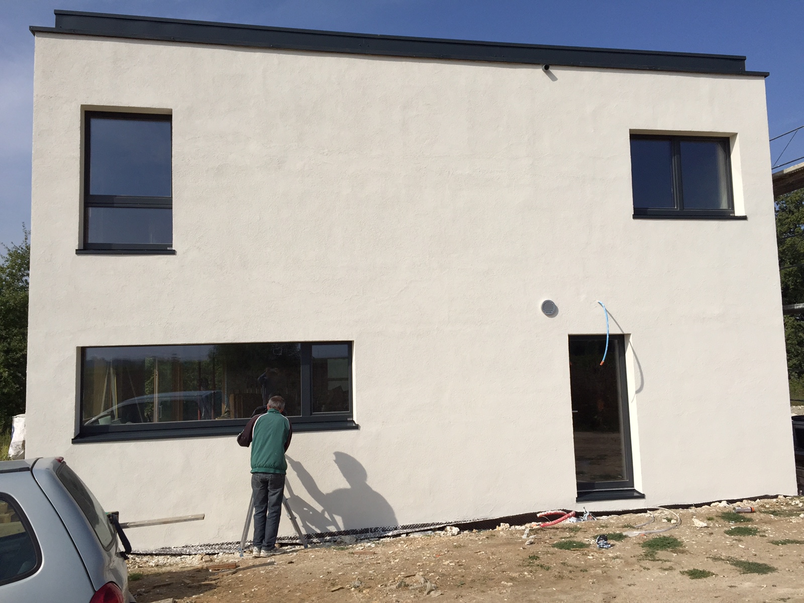 Construction neuve en brique mono mur épaisseur 30 cm , avec puits thermique ( a galets – système puits canadien).
