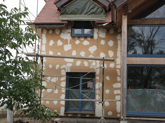 Une maison en ossature bois avec le panneau UdiSPEED ® épaisseur 40 mm – densité 270 kg/m3, panneau anti déformante, aidant au contreventement. … Plus
